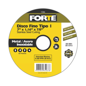 DISCO ABRASIVO PARA CORTE FINO DE METAL E INOXIDABLE DE 7 X 1/16 X 7/8 FORTE