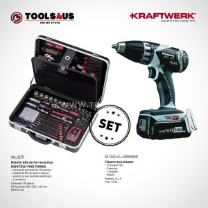 Taladro Panasonic EY 7441 LF + Maleta ABS HIGHTECH FINE POWER (175 Piezas)