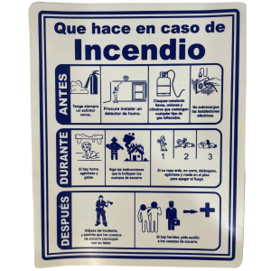 LETRERO DE SENALIZACION 25 X 20 CM STANDARD-QUE HACER EN CASO DE INCENDIO