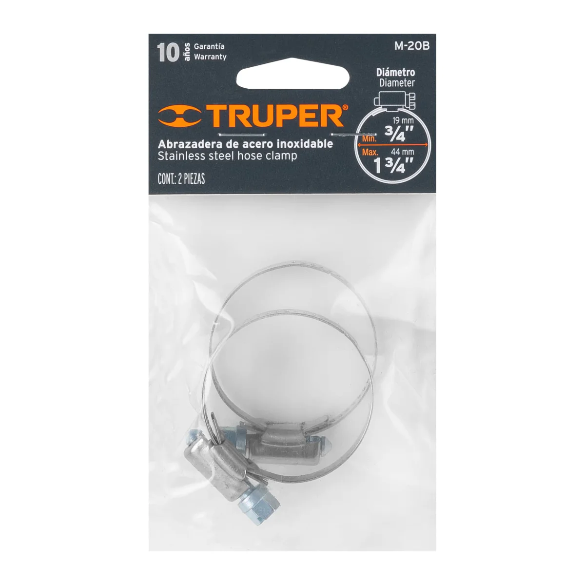 La abrazadera de acero inoxidable M-20B de Truper es una herramienta de sujeción resistente y duradera. Con un diámetro de 20 mm, esta abrazadera es ideal para sujetar tubos y otros objetos de tamaño similar. Fabricada con acero inoxidable de alta calidad, esta abrazadera es resistente a la corrosión y a la oxidación, lo que la hace ideal para su uso en ambientes húmedos o corrosivos. Además, cuenta con un tornillo de ajuste que permite ajustar la presión de sujeción según las necesidades del usuario. Con su diseño robusto y su acabado pulido, la abrazadera de acero inoxidable M-20B de Truper es una herramienta confiable y de alta calidad para cualquier proyecto de sujeción.