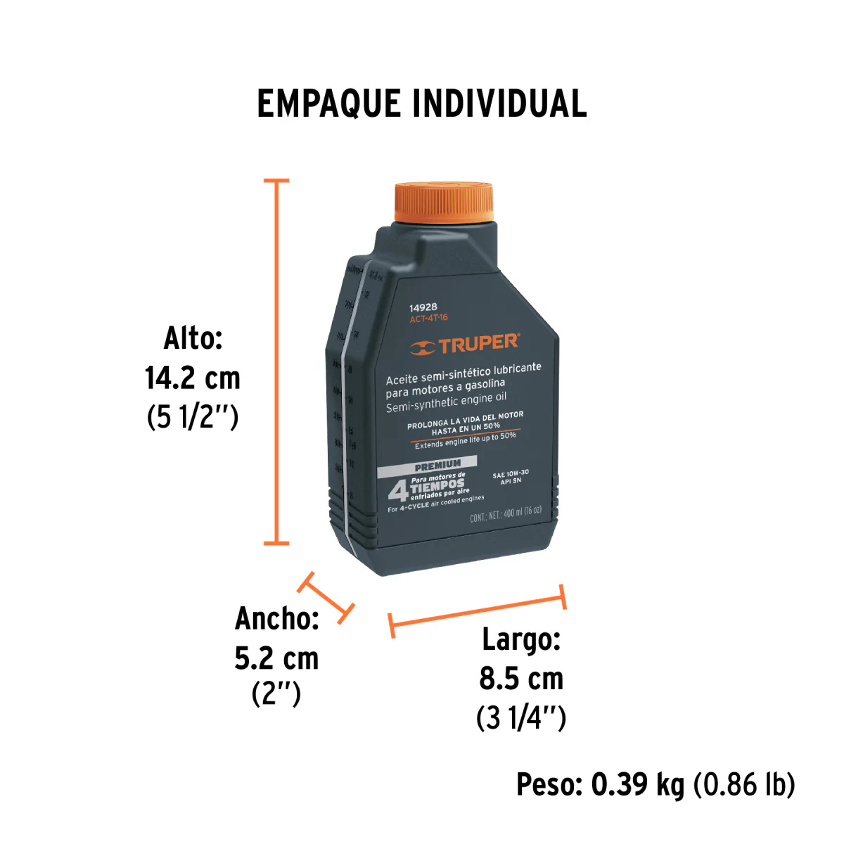 El Aceite Semi-Sint 1/2Lt Act-4T-16 Truper es un lubricante de alta calidad diseñado para motores de cuatro tiempos. Este aceite semi-sintético ofrece una excelente protección contra el desgaste y la corrosión, lo que prolonga la vida útil del motor. Además, su fórmula especial reduce la formación de depósitos y mantiene el motor limpio. Este aceite es compatible con una amplia gama de motores de cuatro tiempos, incluyendo motocicletas, cortadoras de césped, generadores y más. Con su presentación en envase de medio litro, es fácil de almacenar y transportar. El Aceite Semi-Sint 1/2Lt Act-4T-16 Truper es una excelente opción para mantener su motor en óptimas condiciones.