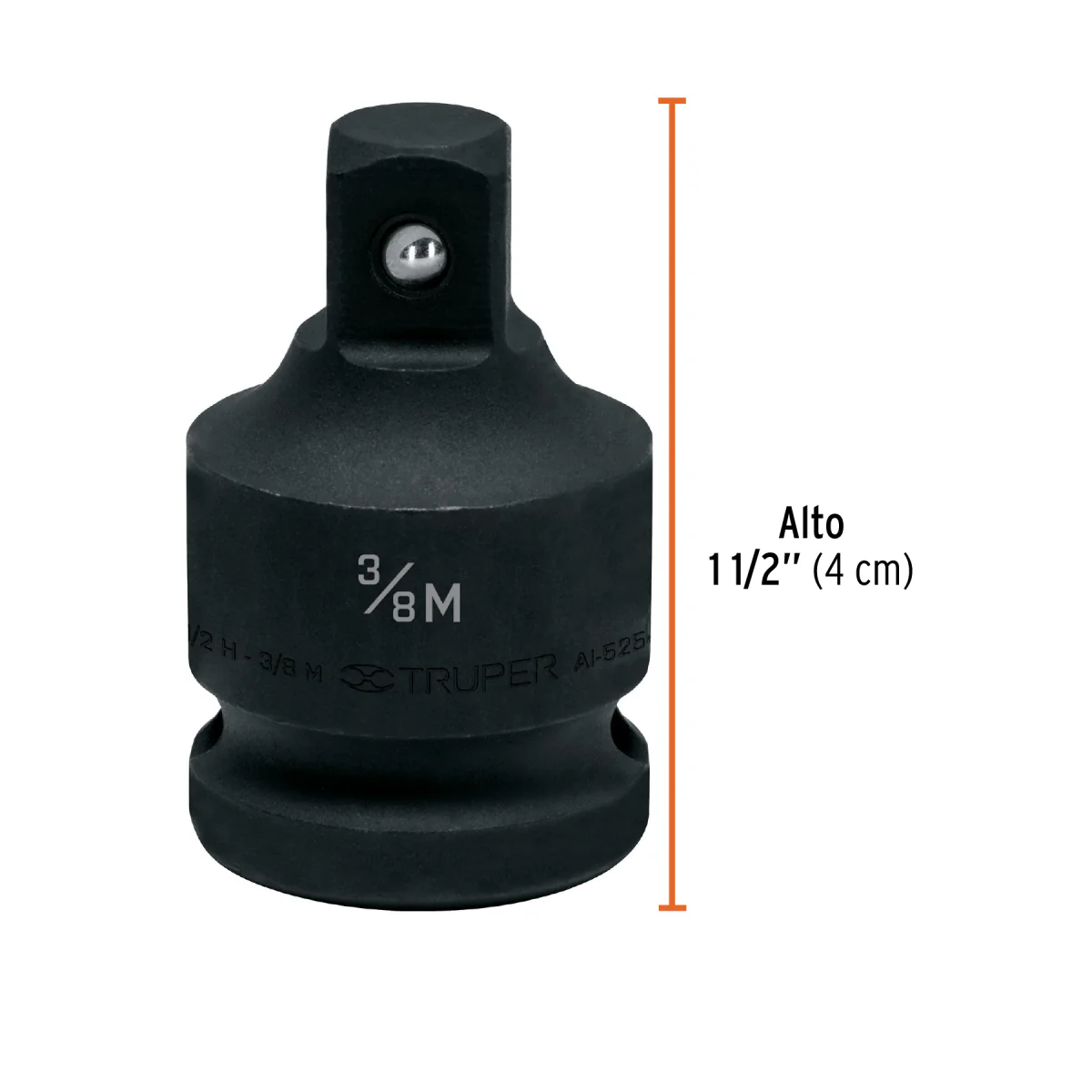 El adaptador de impacto 1/2X3/8 Ai-5254 de Truper es una herramienta de alta calidad diseñada para convertir una llave de impacto de 1/2 pulgadas en una de 3/8 pulgadas. Este adaptador está fabricado con materiales resistentes y duraderos que garantizan su larga vida útil y su capacidad para soportar el uso intensivo en trabajos de mecánica y construcción. Además, su diseño compacto y ligero permite un fácil manejo y almacenamiento. Este adaptador es compatible con una amplia variedad de herramientas de impacto y es una excelente opción para aquellos que buscan una herramienta versátil y confiable para sus proyectos de bricolaje o profesionales.