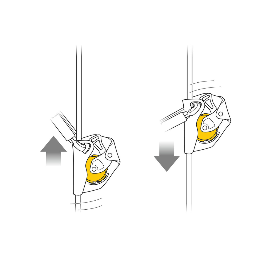 – Se desplaza a lo largo de la cuerda hacia arriba y hacia abajo, sin ninguna intervención manual.