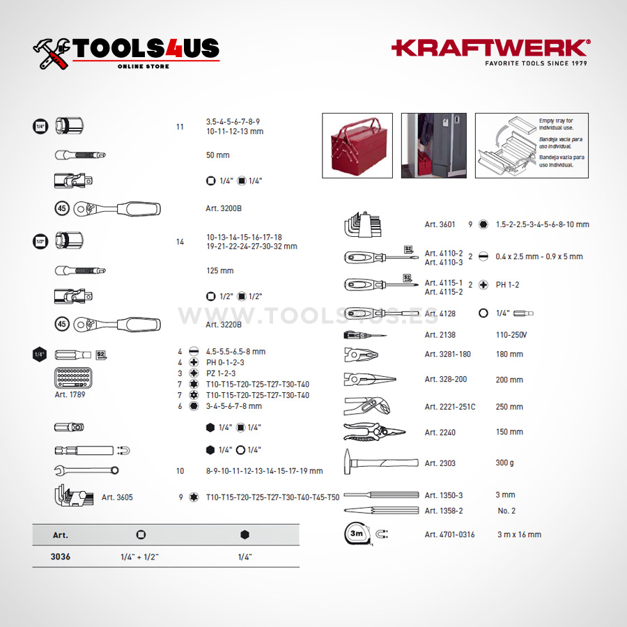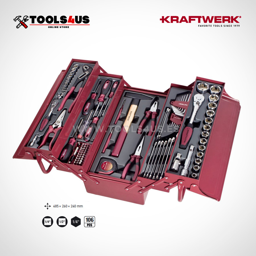 Equipada con 106 herramientas especialmente seleccionadas para el particular aficionado. Ver pestaña de descripción