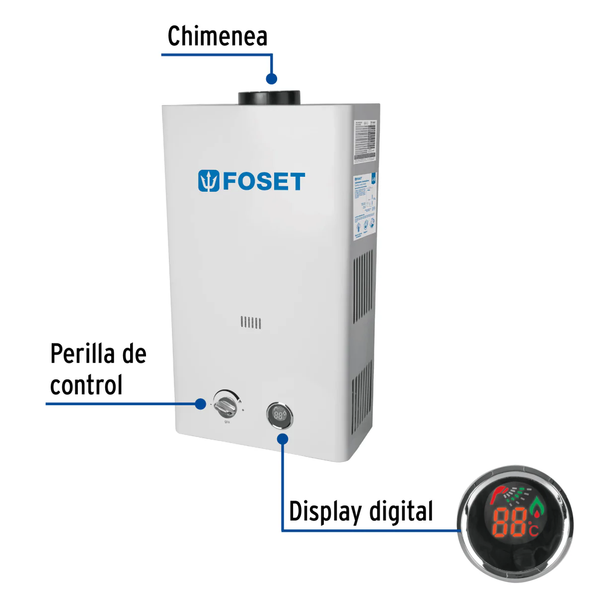 El calentador de agua de paso Cale-13I Foset es una solución eficiente y compacta para el suministro continuo de agua caliente. Con una capacidad de 13 litros por minuto, es ideal para hogares y oficinas. Funciona con gas LP, cuenta con sistema de encendido automático y un diseño seguro y fácil de instalar. Ahorra energía y proporciona agua caliente de forma instantánea, asegurando comodidad en el uso diario.