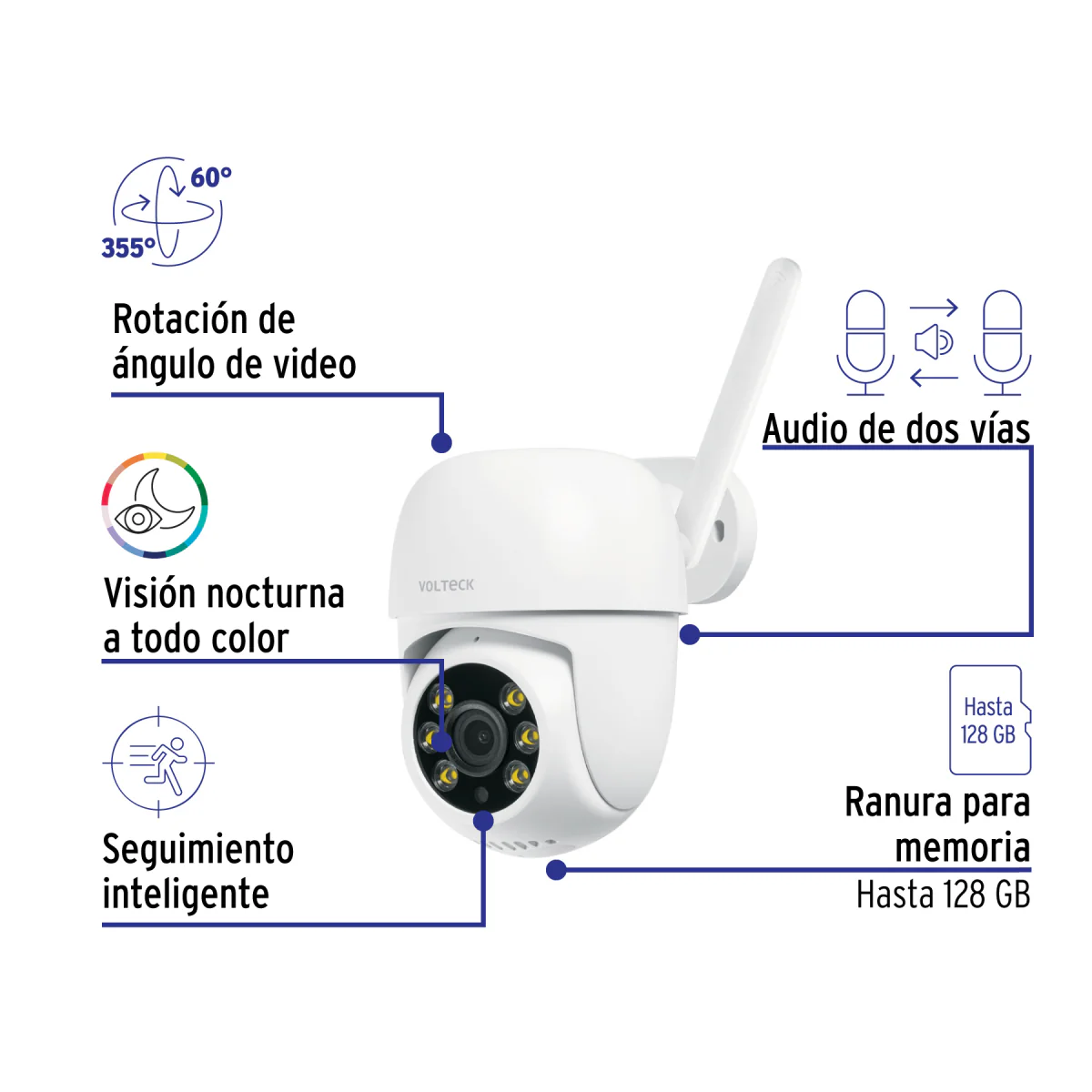 La Cámara Wifi Robotizada Tipo Domo 3Mp Ctv-31W de Volteck ofrece alta resolución y un ángulo de visión amplio, lo que facilita el monitoreo constante de espacios internos. Su tecnología robotizada permite un control remoto completo de su orientación, ideal para vigilar oficinas, viviendas o establecimientos comerciales. Con conexión Wifi, puedes acceder a las imágenes en tiempo real desde cualquier dispositivo móvil, garantizando seguridad y control de tus espacios.