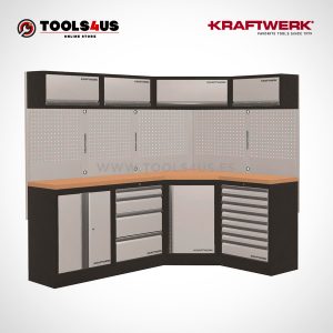 Todo tu taller en un solo carro. Ampto para ser utilzado como banco de trabajo. Encimera en sobre de mandera de Haya natural Multiplex, 2.5cm de espesor, resistente al agua, a la suciedad, al aceite y a la grasa