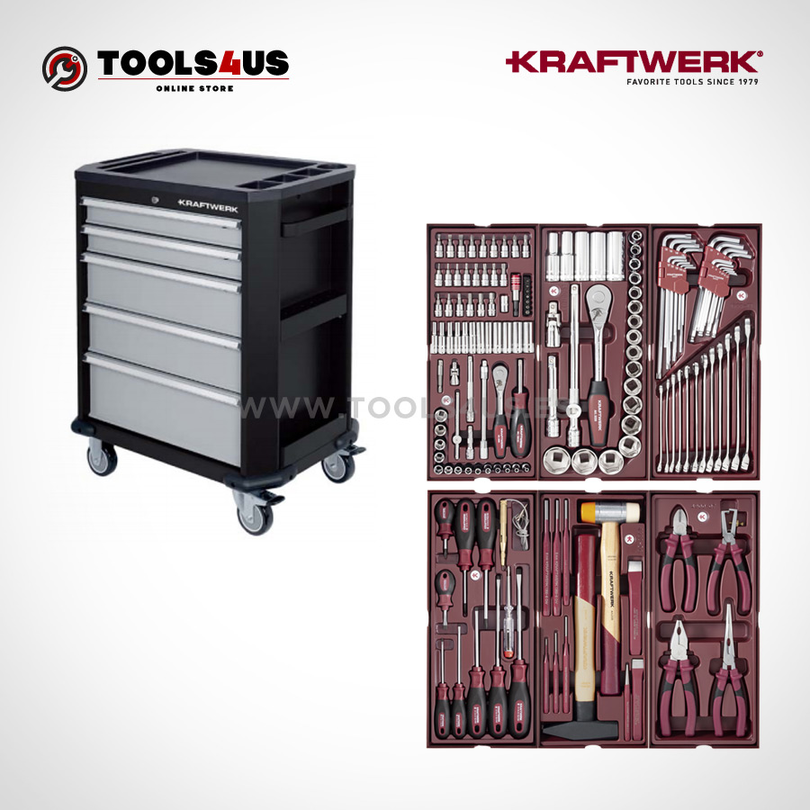 Carro largo de herramientas para taller con 5 cajones KRAFTWERK® RACING SERIES. Equipao con 150 herramientas profesionales