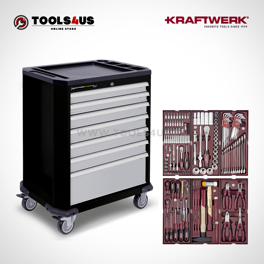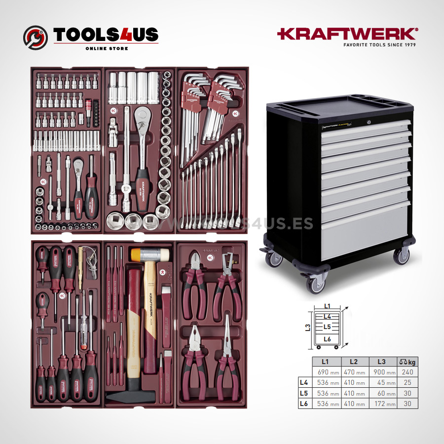 Carro largo de herramientas para taller con 7 cajones KRAFTWERK® equipado con 286 herramientas profesionales