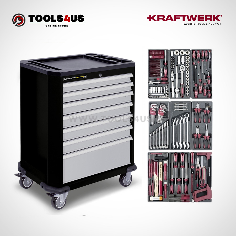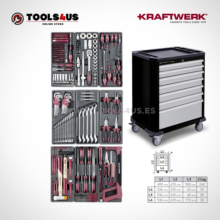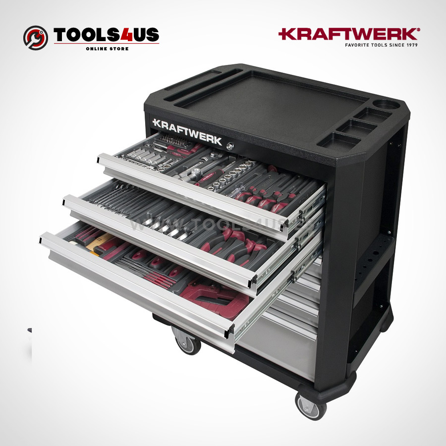 Carro largo de herramientas para taller con 7 cajones KRAFTWERK® equipado con 286 herramientas profesionales