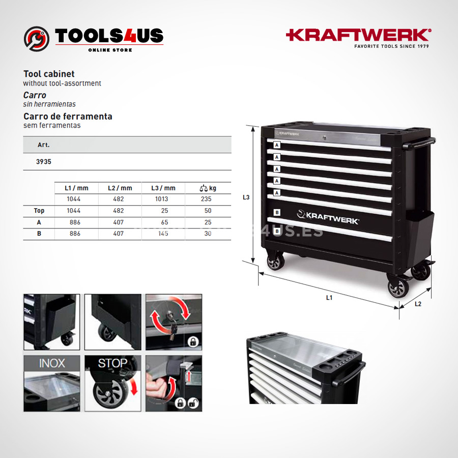 Carro largo de herramientas para taller con 7 cajones KRAFTWERK® EDICIÓN LIMITADA