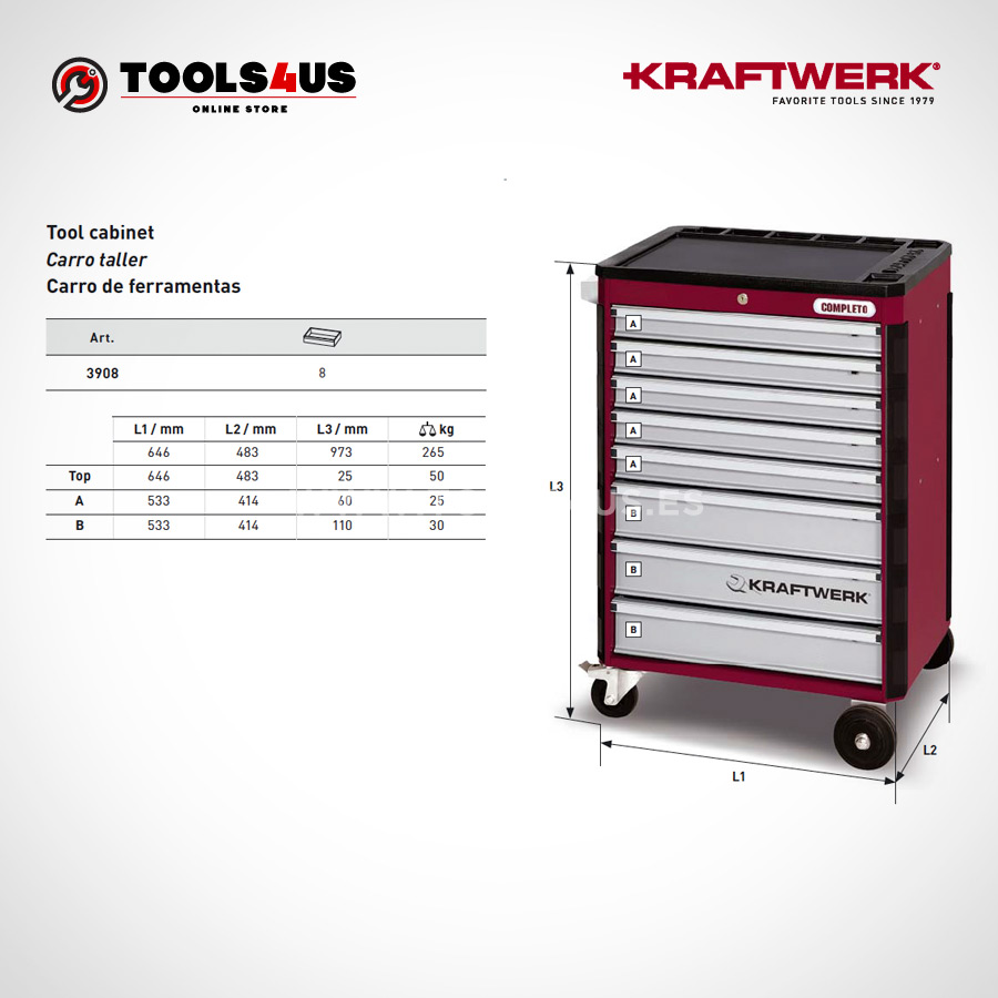 Carro profesional KRAFTWERK® HIGHTECH para taller.