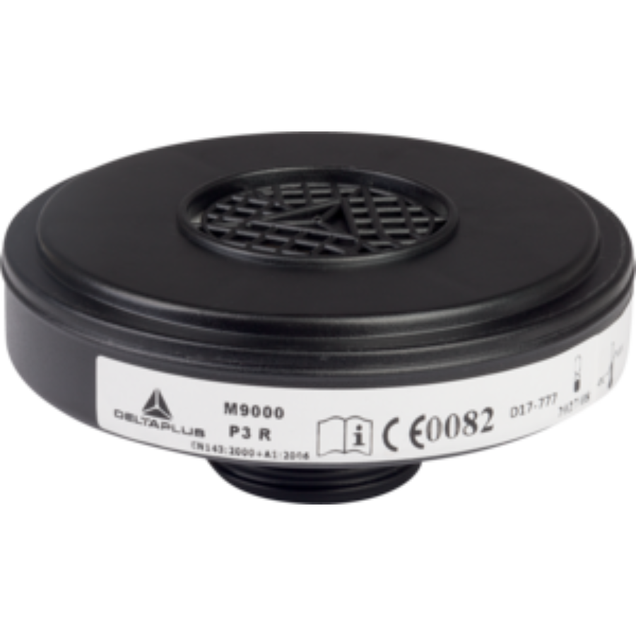 Caja de 4 cartuchos filtrantes P3 para máscaras completas M9200 ROTOR GALAXY y M9300 STRAP GALAXY. Tapones resellables para reutilizar el cartucho tras su uso y prolongar su vida útil. Sistema de fijación universal DIN40.