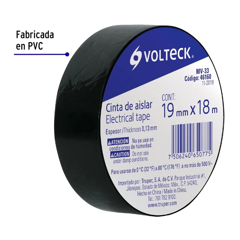 La cinta aislante negra MV-33 de Volteck es un producto de alta calidad y resistencia, diseñado para brindar una excelente protección eléctrica. Con una longitud de 18 metros, esta cinta es ideal para aislar y proteger cables eléctricos, evitando cortocircuitos y posibles accidentes. Su color negro le otorga un aspecto discreto y profesional, perfecto para su uso en instalaciones eléctricas tanto en el hogar como en entornos industriales. Además, su adhesivo de alta adherencia garantiza una fijación segura y duradera. La cinta aislante negra MV-33 de Volteck es una opción confiable y eficiente para cualquier proyecto eléctrico.