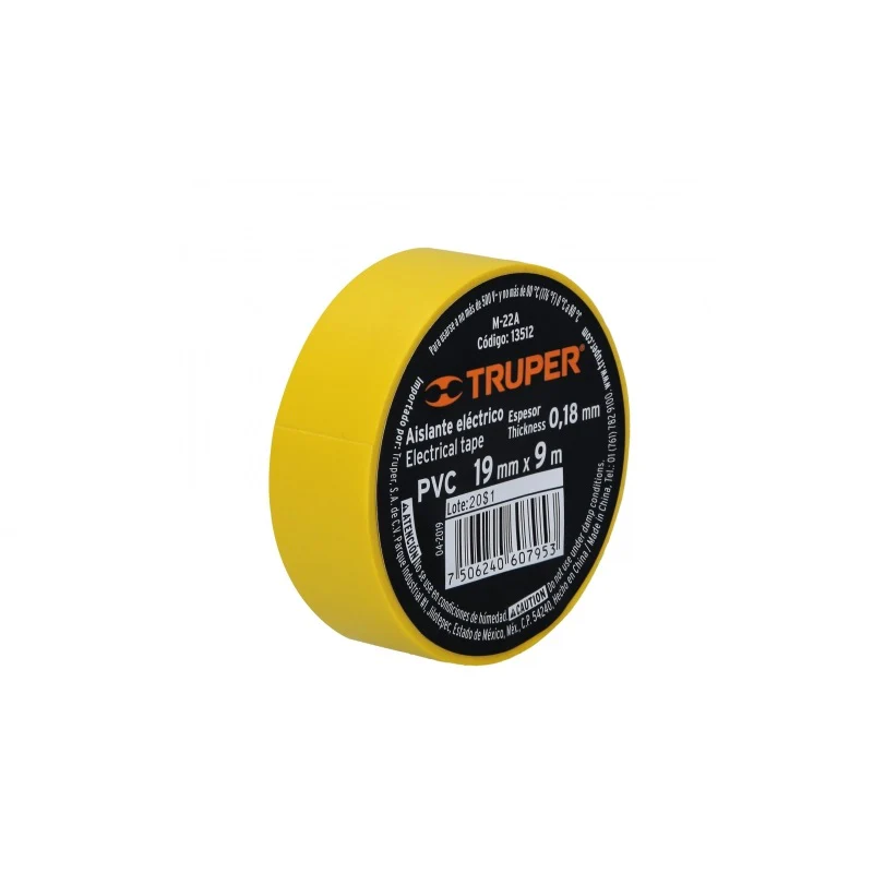 La cinta aislante #22 9M Amarilla M-22A de la marca Truper es un producto de alta calidad y durabilidad utilizado principalmente en trabajos eléctricos. Con una longitud de 9 metros, esta cinta ofrece una excelente resistencia a la tensión y aislamiento eléctrico, lo que la convierte en una opción confiable para proteger y asegurar conexiones eléctricas. Su color amarillo brillante facilita la identificación y el reconocimiento visual, lo que resulta especialmente útil en instalaciones eléctricas complejas. Además, su adhesivo de alta adherencia garantiza una fijación segura y duradera. La cinta aislante #22 9M Amarilla M-22A de Truper es una herramienta imprescindible para electricistas y profesionales del sector.