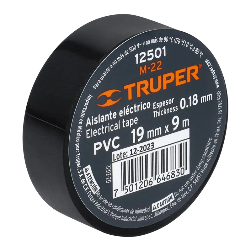 La cinta de aislar negra M-22 Truper es un producto de alta calidad y resistencia, diseñado para brindar una solución eficiente en tareas de aislamiento eléctrico. Con una longitud de varios metros, esta cinta adhesiva se caracteriza por su color negro, lo que la hace ideal para ocultar y proteger cables y conexiones eléctricas. Su adhesivo de gran adherencia garantiza una fijación segura y duradera, incluso en condiciones de humedad o altas temperaturas. Además, su material resistente y flexible permite un fácil manejo y aplicación, adaptándose a diferentes superficies y formas. La cinta de aislar negra M-22 Truper es una herramienta imprescindible para electricistas y profesionales que buscan una solución confiable y de calidad en sus proyectos.