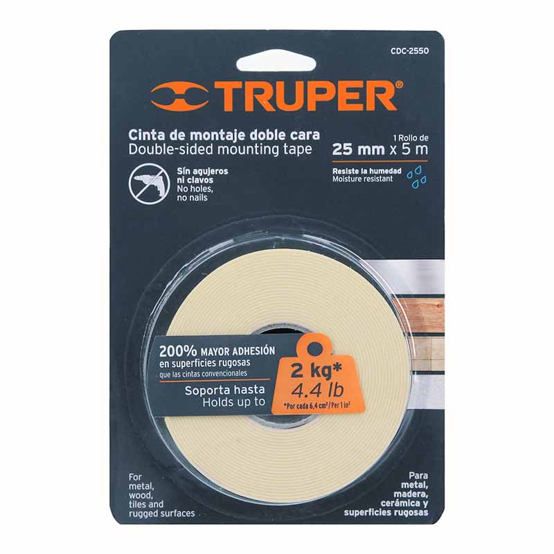 La cinta doble cara 1″X5Mt Cdc-2550 Truper es un producto de alta calidad y resistencia, ideal para múltiples usos en el hogar, la oficina o cualquier proyecto de manualidades. Con una longitud de 5 metros y un ancho de 1 pulgada, esta cinta es perfecta para adherir de forma segura y duradera diferentes materiales como papel, cartón, plástico, tela y madera. Su diseño versátil permite un fácil manejo y aplicación, garantizando una unión fuerte y sin dejar residuos. Además, su adhesivo de doble cara proporciona una mayor adherencia y estabilidad, asegurando un resultado profesional en cada proyecto.