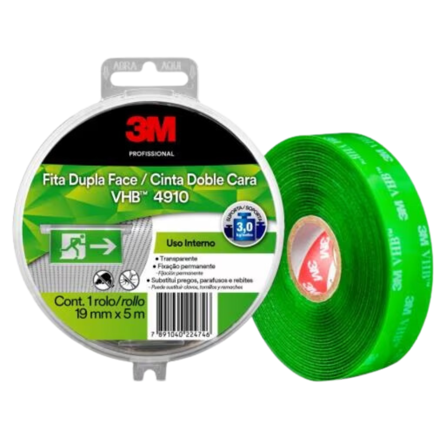 Soñe, diseñe y entregue con la cinta 3M™ VHB™ 4910. Es un adhesivo acrílico transparente de 0.040 pulg. (1.0 mm) de uso general en ambos lados de un núcleo de espuma firme. Puede reemplazar remaches, soldaduras y tornillos. El método de unión permanente rápido y fácil de usar proporciona alta resistencia y durabilidad a largo plazo. Ofrece flexibilidad de diseño con su viscoelasticidad y su poderosa capacidad para adherirse a una variedad de superficies.