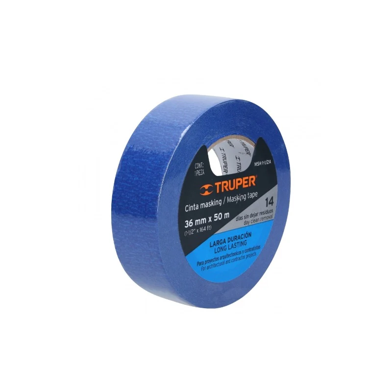 La cinta Masking Tape Msk-1-1/2A Azul Truper es un producto de alta calidad y durabilidad, ideal para trabajos de pintura y enmascarado. Con un ancho de 1-1/2 pulgadas, esta cinta proporciona una excelente adhesión a diferentes superficies, como madera, metal, vidrio y plástico. Su color azul permite una fácil identificación y remoción sin dejar residuos pegajosos. Además, esta cinta es resistente a la humedad y a los rayos UV, lo que la hace perfecta para proyectos tanto en interiores como en exteriores. Con la cinta Masking Tape Msk-1-1/2A Azul Truper, obtendrás resultados profesionales y precisos en tus trabajos de pintura.