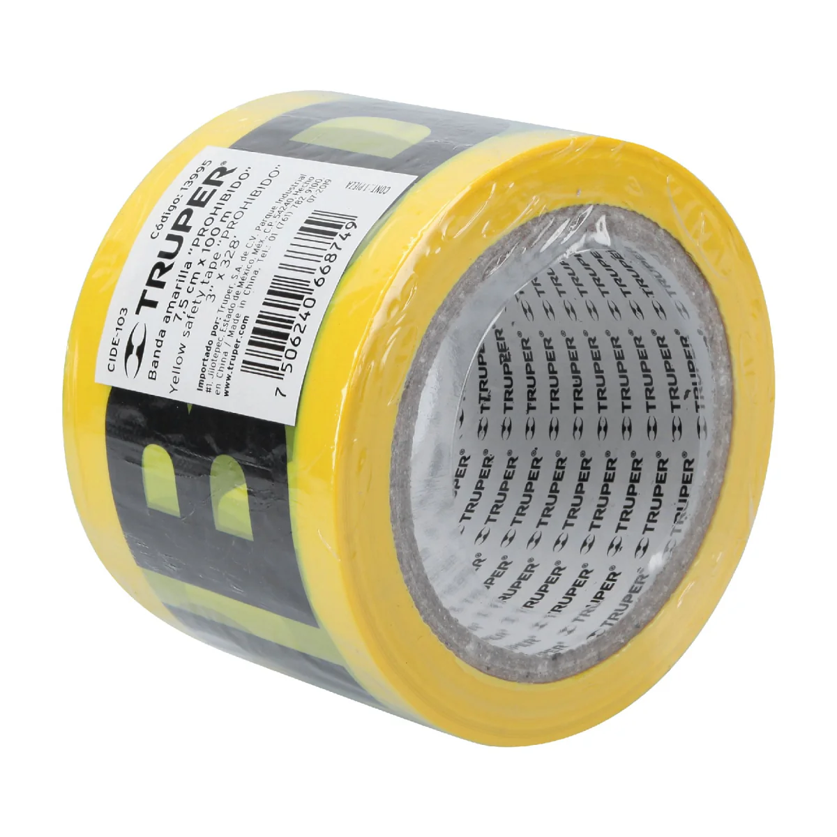 La cinta «Prohibido» de 100 metros de longitud, modelo Cide-103 de la marca Truper, es un producto de alta calidad y resistencia diseñado para señalizar áreas o situaciones que están prohibidas o restringidas. Su color llamativo y su texto en letras grandes y claras, que dicen «Prohibido», garantizan una fácil visibilidad y comprensión por parte de los usuarios. Esta cinta es ideal para ser utilizada en construcciones, obras viales, eventos o cualquier lugar donde se necesite advertir sobre la prohibición de acceso o el paso restringido. Además, su material duradero y resistente a la intemperie asegura una larga vida útil y un rendimiento confiable en cualquier entorno.