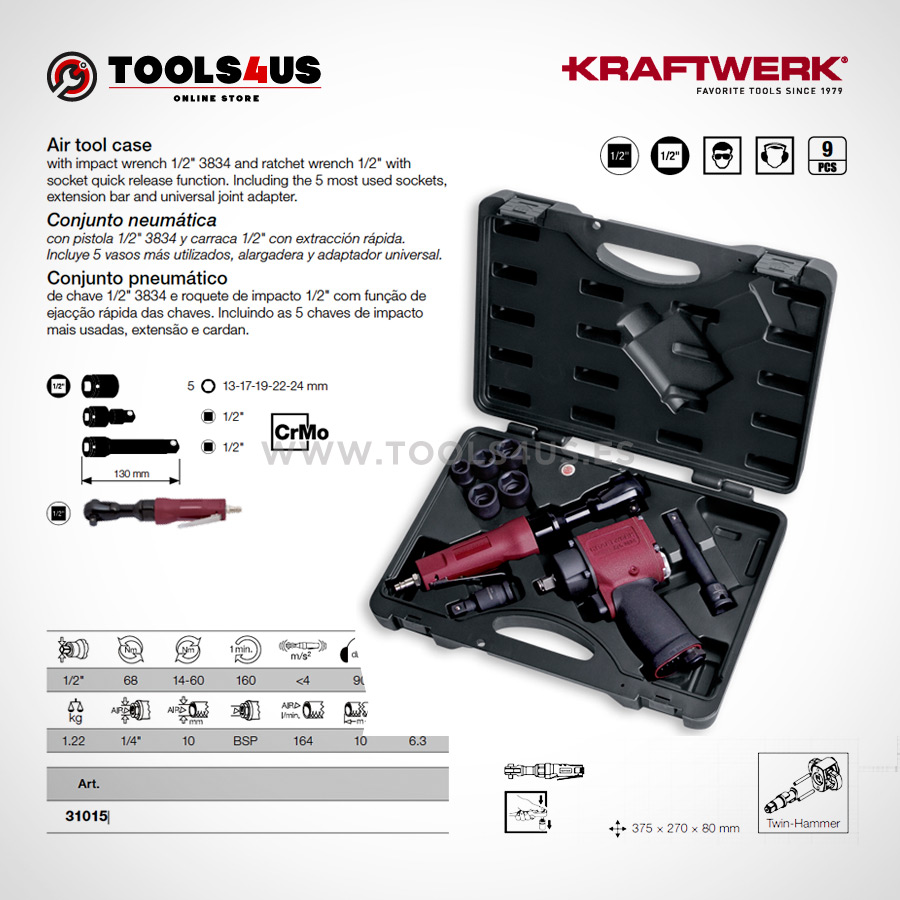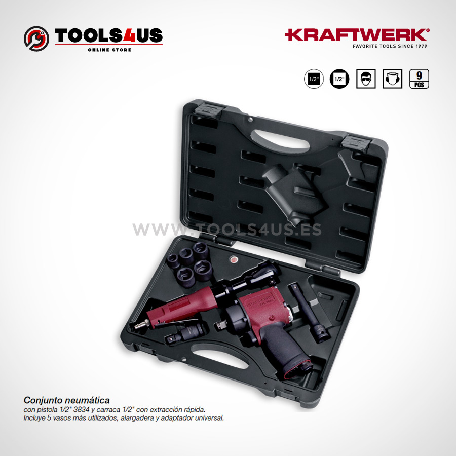 Set de Pistola y Carraca Neumática con pistola 1/2″ 3834 y carraca 1/2″ con extracción rápida.