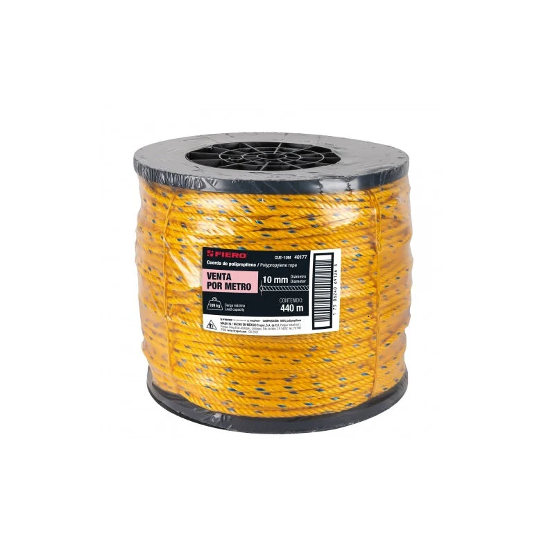 La cuerda de polipropileno de 10 mm Cue-10M Mto Fiero es un producto resistente y duradero, ideal para diversas aplicaciones. Con una longitud de 10 metros, esta cuerda es perfecta para actividades al aire libre como acampar, hacer senderismo o practicar deportes de aventura. Fabricada con materiales de alta calidad, ofrece una gran resistencia a la tracción y a la abrasión, lo que la hace ideal para trabajos de carga y amarre. Además, su diseño trenzado proporciona un agarre seguro y cómodo. Con la cuerda de polipropileno Cue-10M Mto Fiero, podrás realizar tus actividades con confianza y tranquilidad.