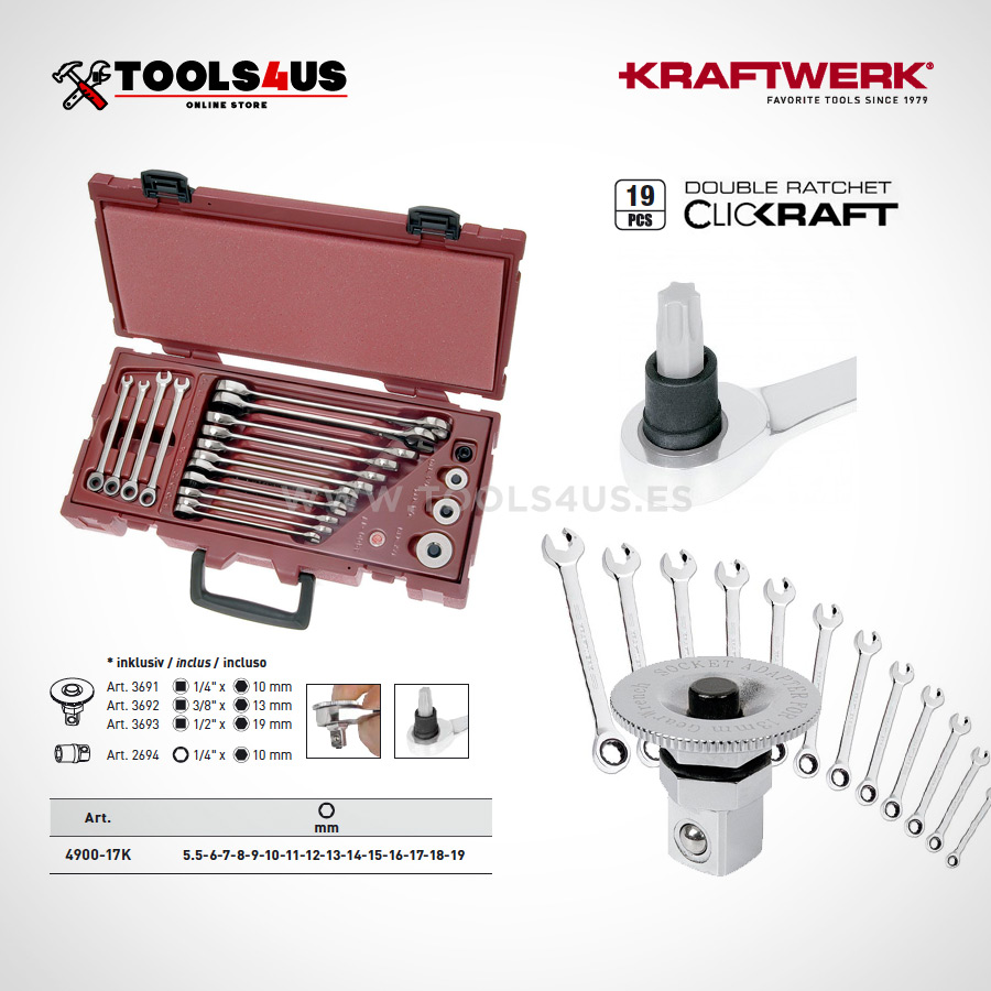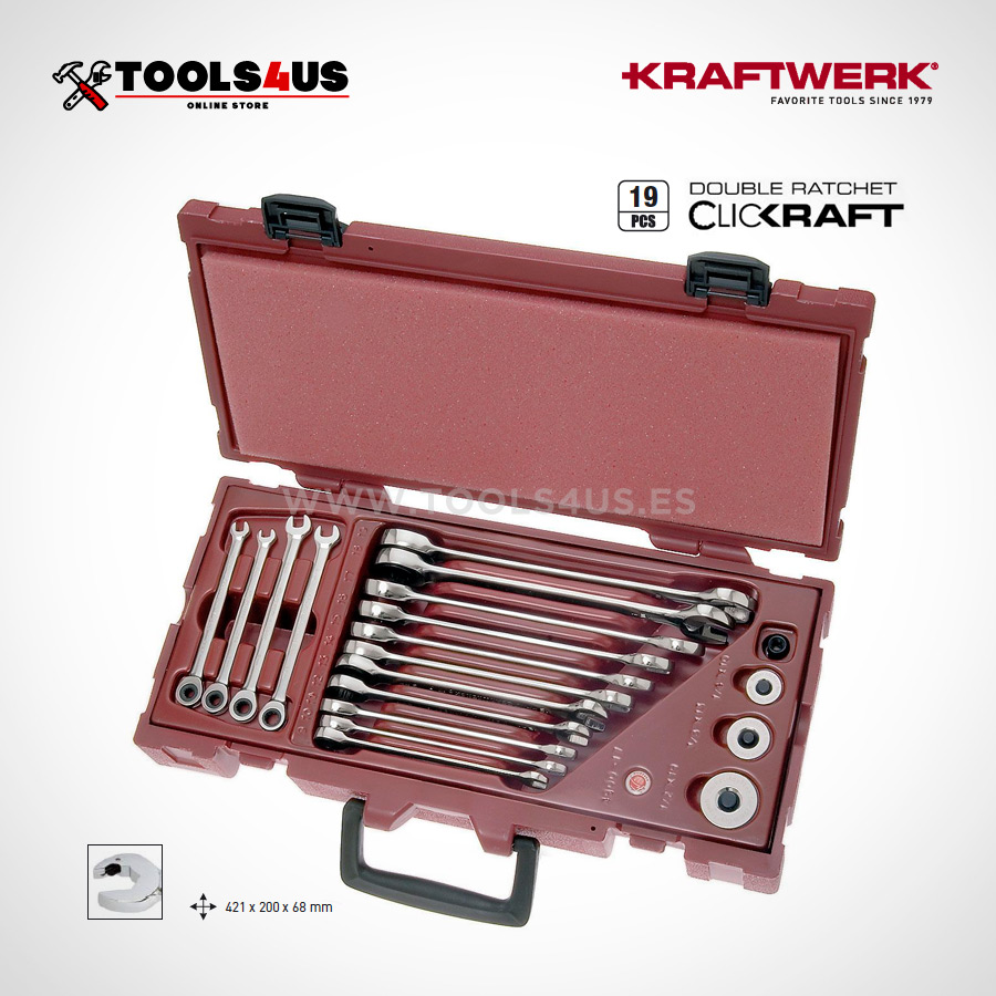 15 llaves combiandas, 12 de ellas con sistema Clickraft® . 3 de ellas sin (5.5 – 6 – 7)