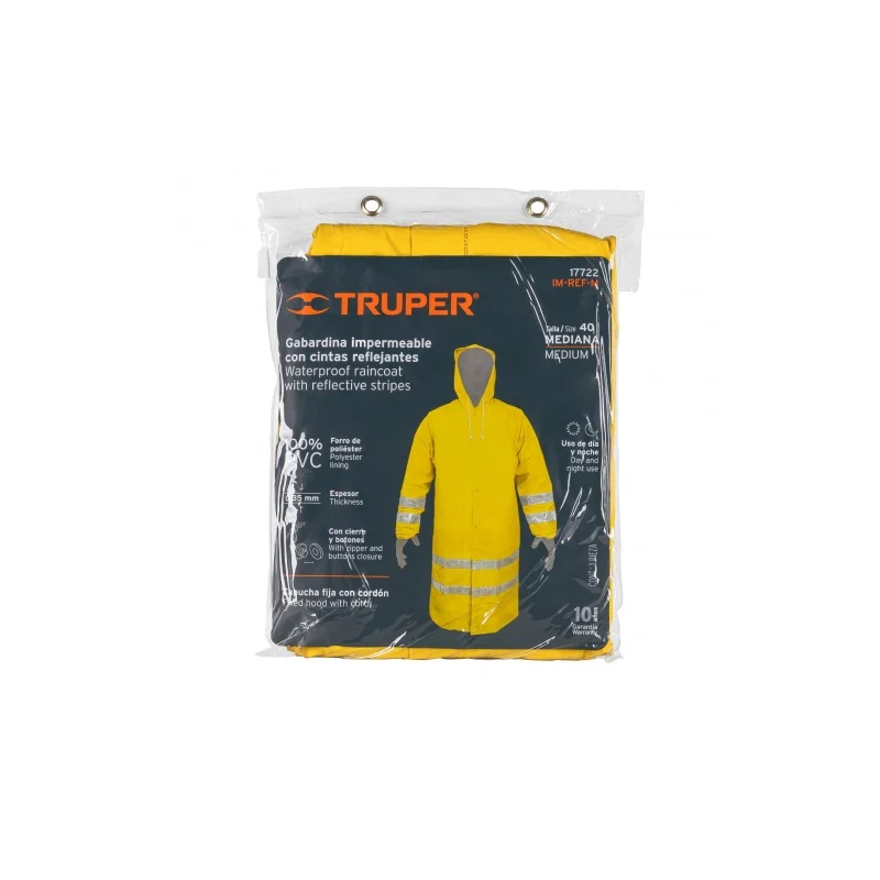La gabardina impermeable con refuerzo mediano Im-Ref-M de Truper es una prenda de vestir ideal para protegerse de la lluvia y el viento. Fabricada con materiales de alta calidad, esta gabardina cuenta con un revestimiento impermeable que la hace resistente al agua y a la humedad. Además, su refuerzo mediano le brinda mayor durabilidad y resistencia ante el desgaste diario. Con un diseño clásico y elegante, esta gabardina es perfecta para cualquier ocasión y se adapta a cualquier estilo de vestimenta. Con la gabardina impermeable Im-Ref-M de Truper, estarás siempre protegido y a la moda.