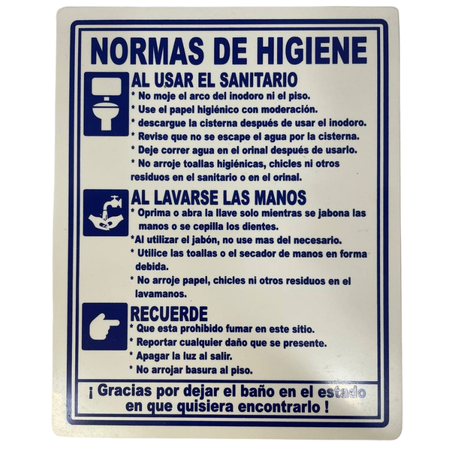LETRERO DE SENALIZACION 25 X 20 CM STANDARD-NORMAS DE HIGIENE