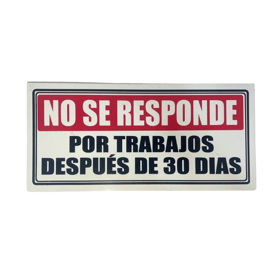 LETRERO DE SENALIZACION 30 X 15 CM STANDARD-NO SE RESPONDE TRABAJOS DESPUES DE 30 DIAS
