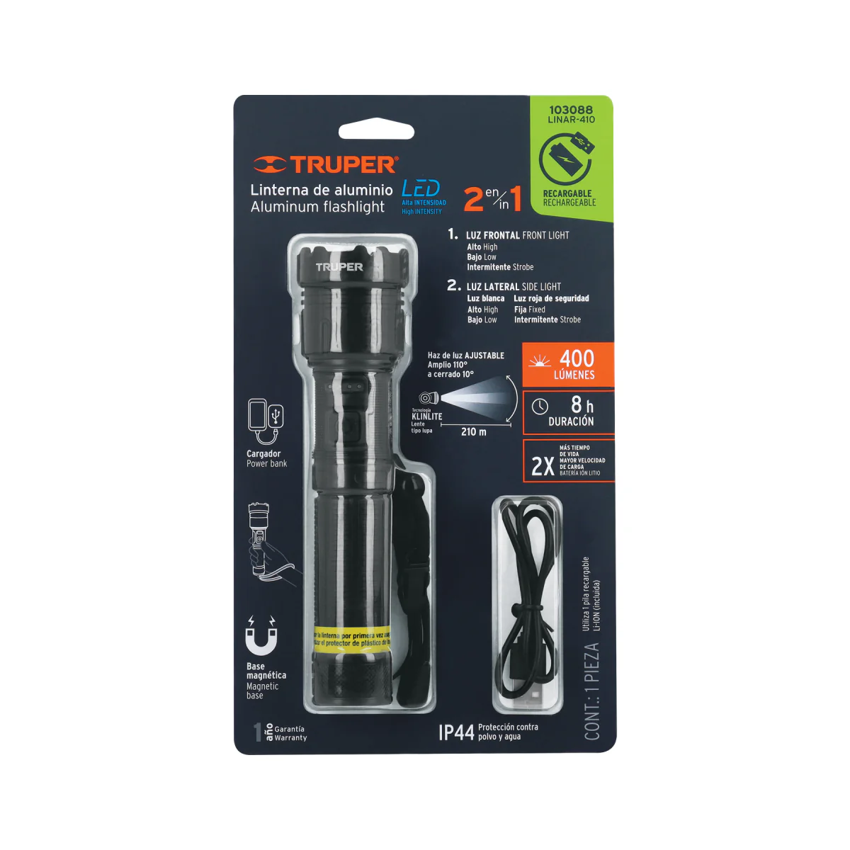 La linterna recargable modelo Linar-410 de Truper es una fuente de luz confiable y portátil, equipada con una función de emergencia que proporciona iluminación en situaciones de cortes de energía. Con una potente luz LED y un diseño ergonómico, esta linterna es fácil de usar y transportar. Su batería recargable garantiza horas de funcionamiento, convirtiéndola en una herramienta esencial para el hogar, el trabajo o actividades al aire libre.