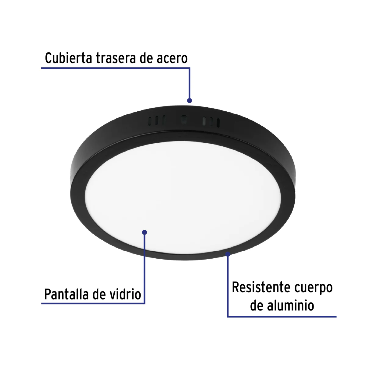 El luminario LED Pla-227L Volteck ofrece una iluminación potente y uniforme con un diseño elegante en color negro. Con 18W de potencia, es ideal para techos y espacios interiores como oficinas, salas y cocinas. Su tecnología LED asegura un bajo consumo energético y una larga vida útil. Fácil de instalar, es una excelente opción para quienes buscan funcionalidad y estética en iluminación.