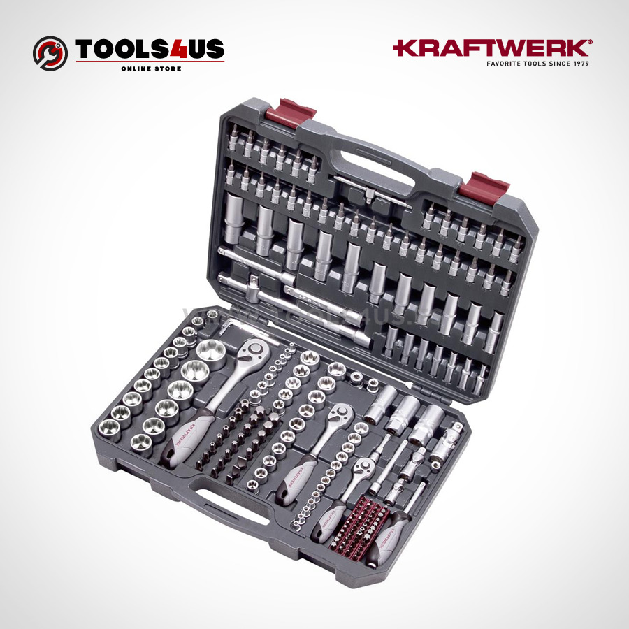 Surtido de herramientas de 200 piezas en maletin fabricado en plástico resistente.