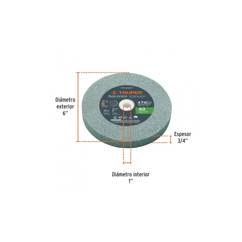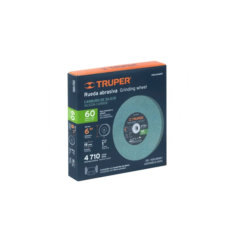 La Rueda Abrasiva P/Esmeril Pies-63460T Truper es un accesorio de alta calidad diseñado para su uso en esmeriles y otras herramientas eléctricas. Esta rueda abrasiva está fabricada con materiales resistentes y duraderos que garantizan un rendimiento óptimo y una larga vida útil. Su diseño permite un afilado preciso y eficiente de diferentes tipos de materiales, como metal, madera y plástico. Además, su tamaño compacto y su fácil instalación la hacen ideal para trabajos de bricolaje y profesionales. Con la Rueda Abrasiva P/Esmeril Pies-63460T Tr, podrás realizar trabajos de lijado, pulido y afilado con resultados impecables.