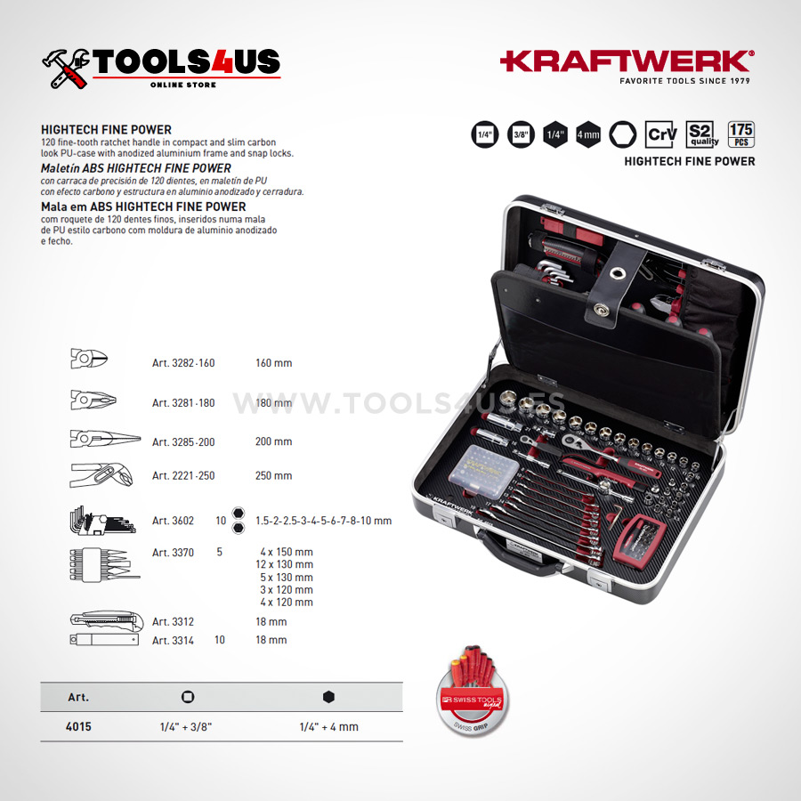 Maleta profesional equipado con 175 piezas totalmente funcionales y de la más alta calidad. HIGHTECH FINE POWER