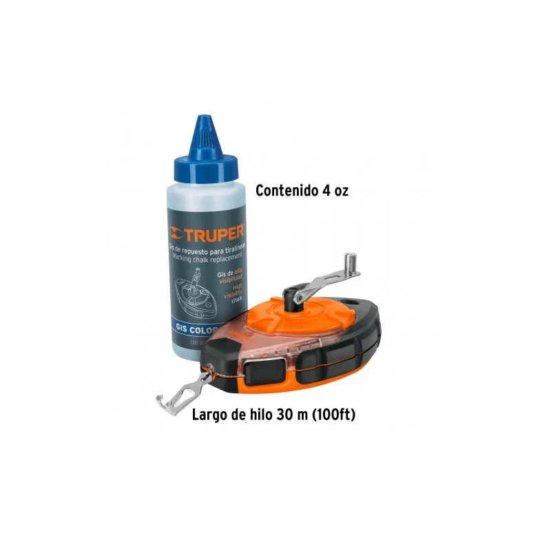 El tiralíneas de 30.5 metros con gis TL-100 de Truper es una herramienta de trazado y marcado de alta precisión, ideal para trabajos de construcción, carpintería, y proyectos de bricolaje. Su diseño resistente y duradero garantiza un trazado preciso y uniforme a lo largo de largas distancias, lo que lo hace perfecto para proyectos de gran escala. El tiralíneas viene con un gis incluido, lo que permite un uso inmediato y conveniente. Su mecanismo de retroceso automático facilita el almacenamiento y transporte. Con este tiralíneas, los usuarios pueden marcar líneas rectas con facilidad y precisión, lo que lo convierte en una herramienta esencial para cualquier caja de herramientas.