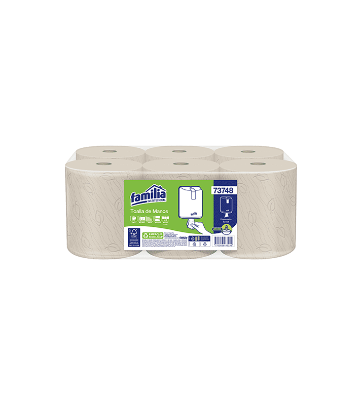 TOALLA EN ROLLO PRECORTADA HOJA DOBLE NATURAL 120MTS PAQ X 6 UNDS REF 73748 FAMILIA