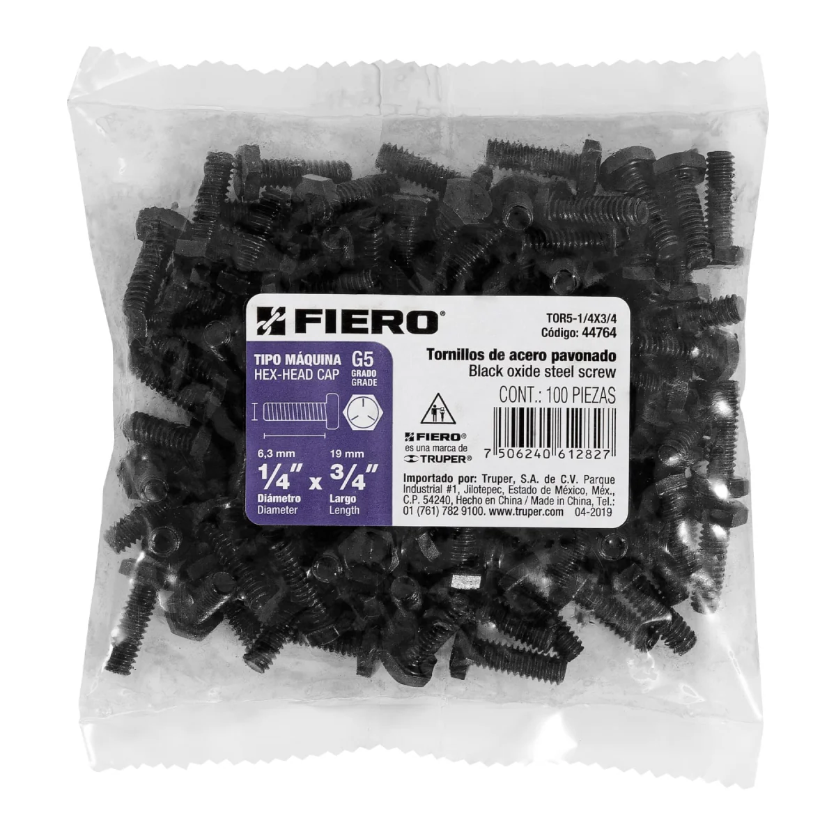 El tornillo D/Grado Tor5-1/4X3/4 Fiero es un elemento de fijación de alta calidad, fabricado con acero de grado superior que garantiza resistencia y durabilidad. Con un diseño de cabeza hexagonal que facilita su instalación con herramientas de apriete, este tornillo es ideal para aplicaciones que requieren una sujeción firme y segura. Su acabado fiero proporciona una protección adicional contra la corrosión, lo que lo hace adecuado para su uso en entornos exteriores o en aplicaciones que requieren resistencia a la intemperie. Este tornillo es una opción confiable para proyectos de construcción, carpintería, fabricación y otras aplicaciones industriales.