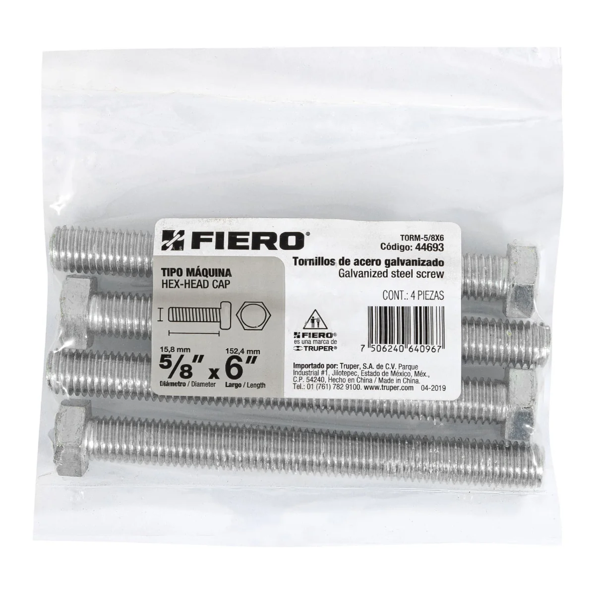 El Tornillo Máquina Torm-5/8X6 4 Pzs Fiero es un conjunto de cuatro tornillos de máquina de alta calidad, diseñados para proporcionar una sujeción segura y duradera en una variedad de aplicaciones. Con una longitud de 6 pulgadas y un diámetro de 5/8 de pulgada, estos tornillos son ideales para proyectos que requieren una fijación resistente y confiable. Fabricados con materiales resistentes y duraderos, estos tornillos son ideales para su uso en entornos industriales, de construcción o en proyectos de bricolaje. Con su diseño robusto y su acabado resistente a la corrosión, el Tornillo Máquina Torm-5/8X6 4 Pzs Fiero es una opción confiable para cualquier tarea de fijación.
