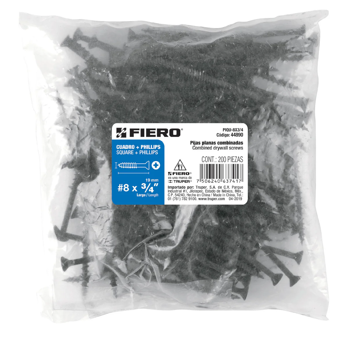 Tornillo Tablaroca Comb Piqu-8X3/4 Fiero Bolsa de 200 Piezas